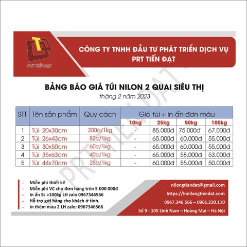 3.Bảng báo giá in túi nilon tại xưởng in Tiến Đạt